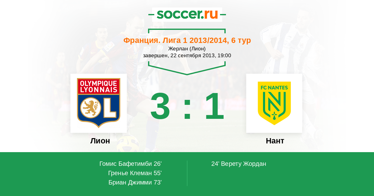 Лион - Нант: обзор матча 22 сентября 2013