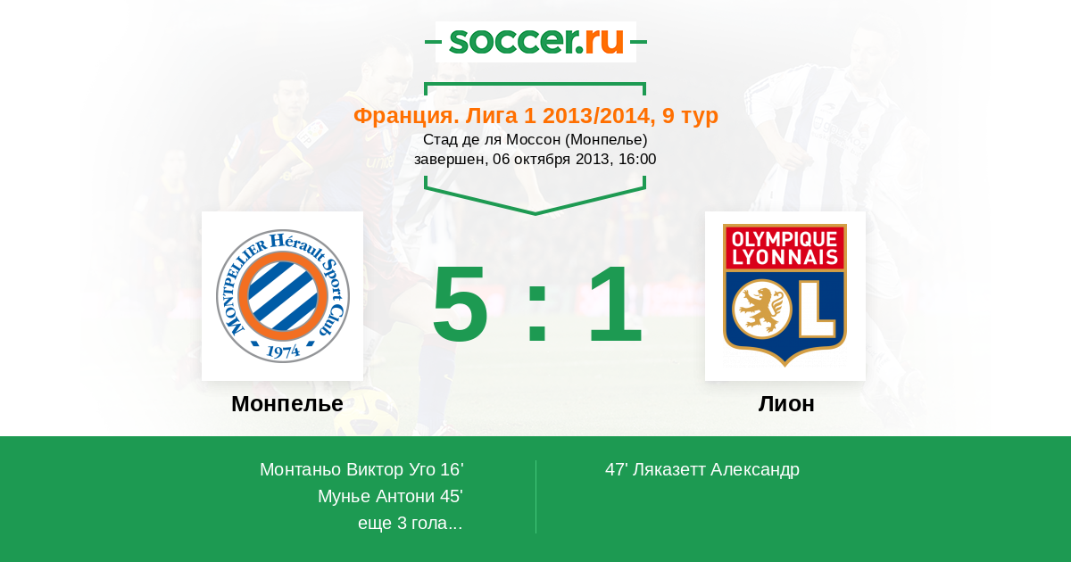 81' ЗаменаЛоготип МонпельеМонтаньо Виктор Уго (29) уходит с поля