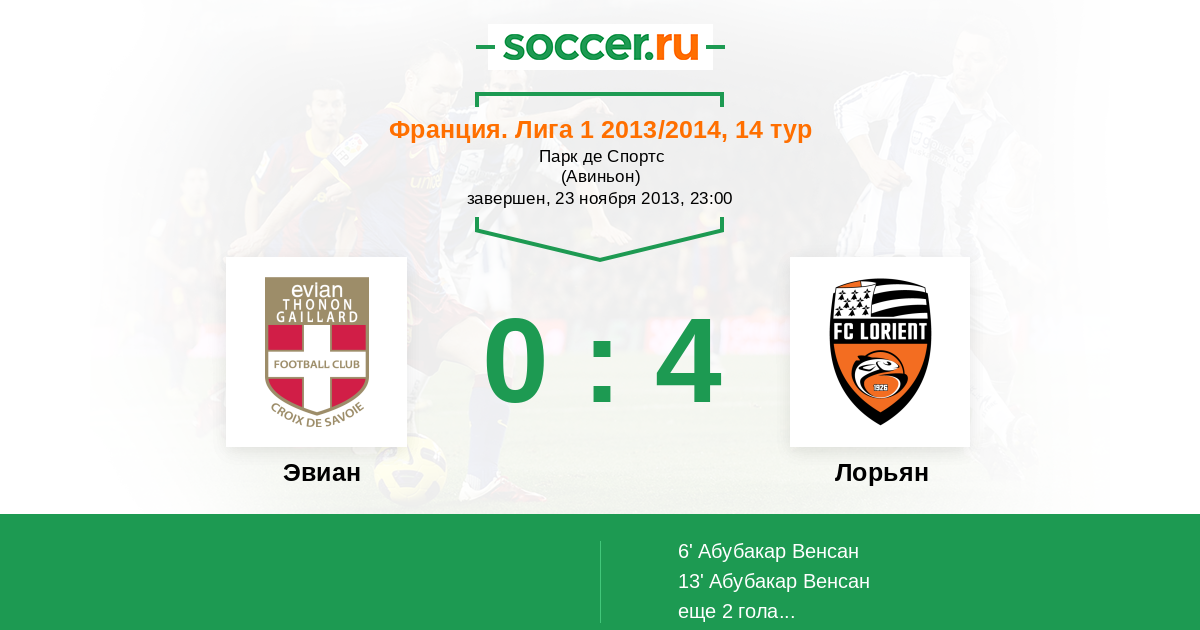 Эвиан - Лорьян: обзор матча 23 ноября 2013