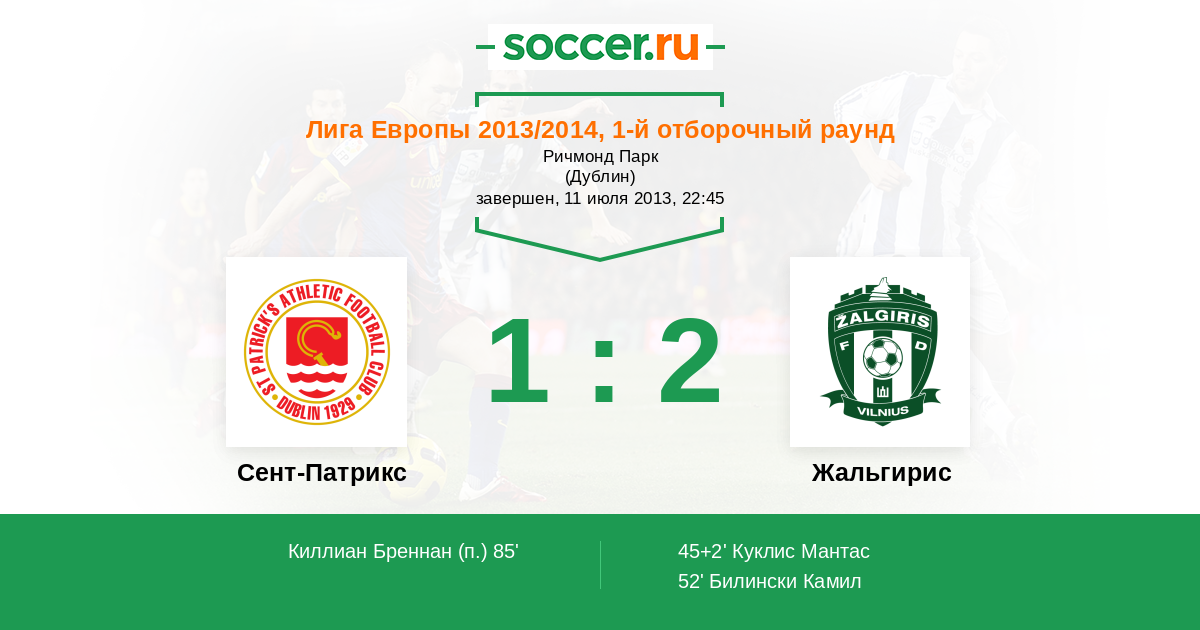 Сент-Патрикс - Жальгирис: обзор матча 11 июля 2013