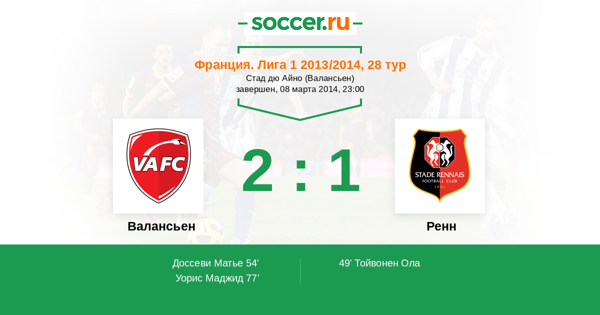 Валансьен - Ренн: обзор матча 8 марта 2014