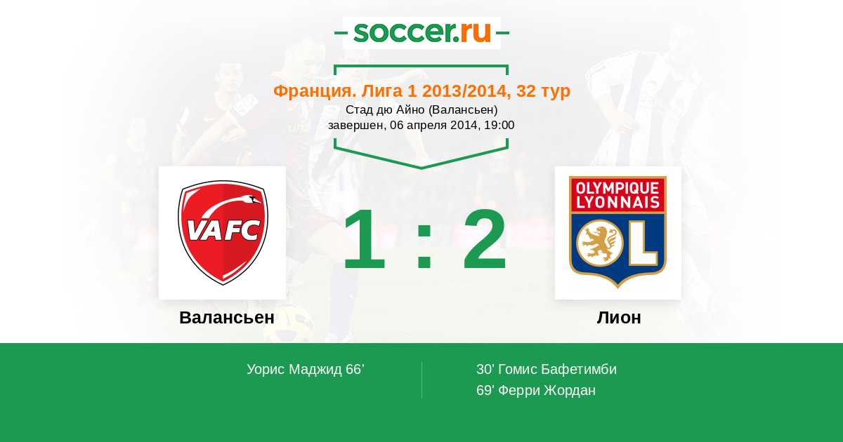 Валансьен - Лион: обзор матча 6 апреля 2014