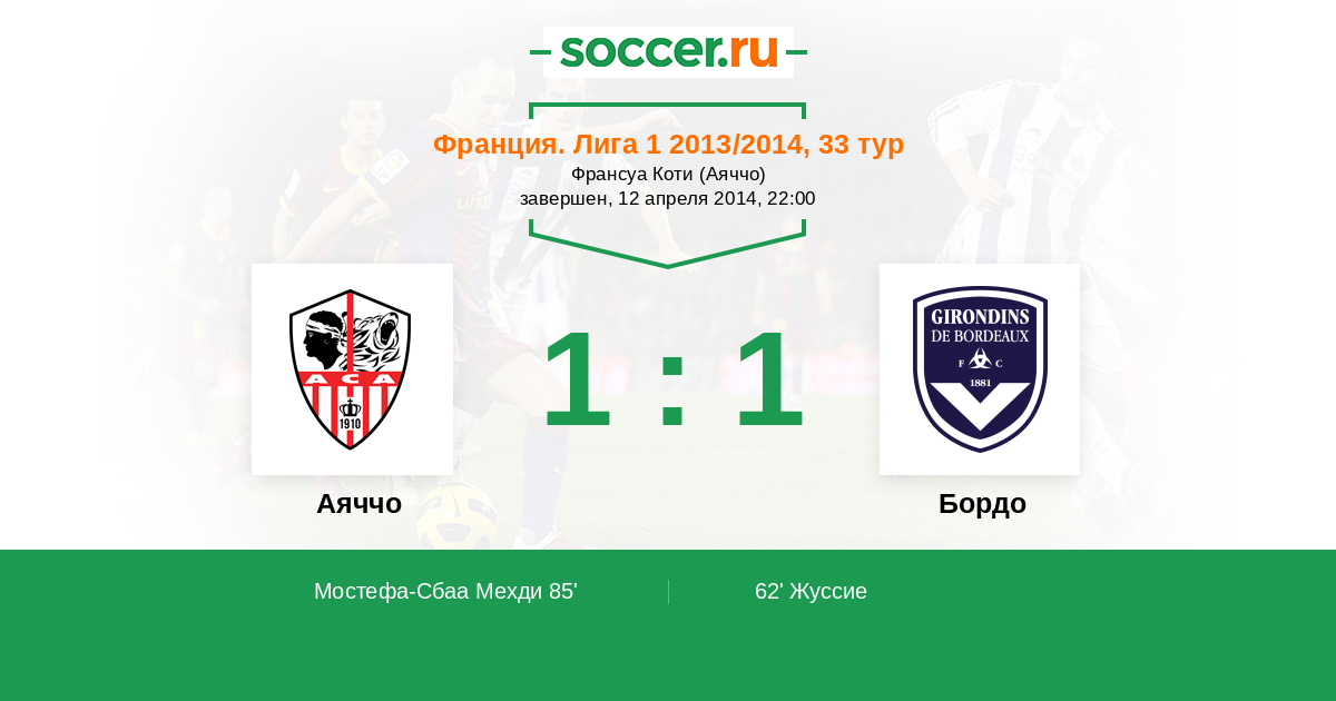 Аяччо - Бордо: обзор матча 12 апреля 2014