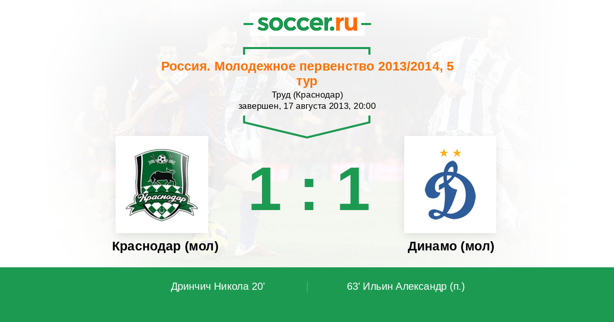 Краснодар (мол) - Динамо (мол): обзор матча 17 августа 2013