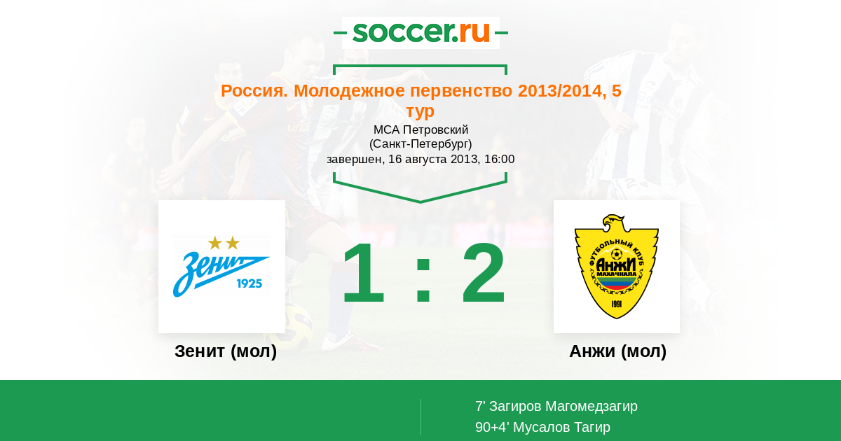 Зенит (мол) - Анжи (мол): обзор матча 16 августа 2013
