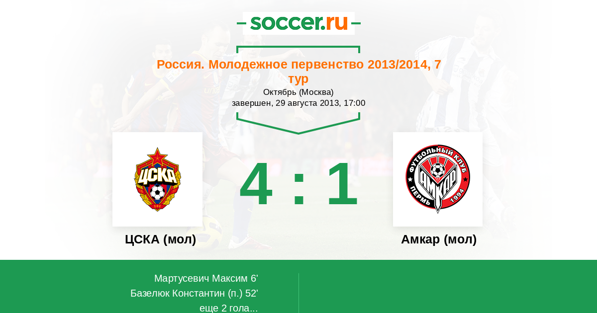 ЦСКА (мол) - Амкар (мол): обзор матча 29 августа 2013