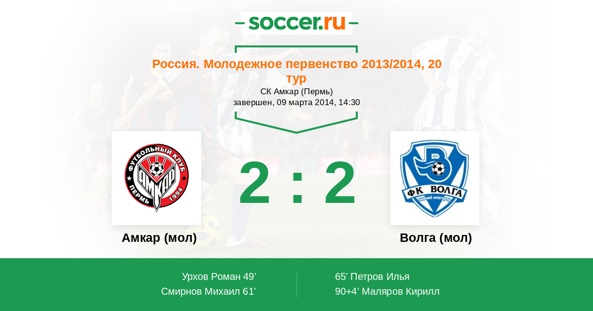 Амкар (мол) - Волга (мол): обзор матча 9 марта 2014