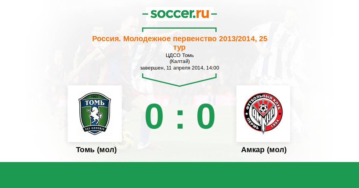 Томь (мол) - Амкар (мол): обзор матча 11 апреля 2014