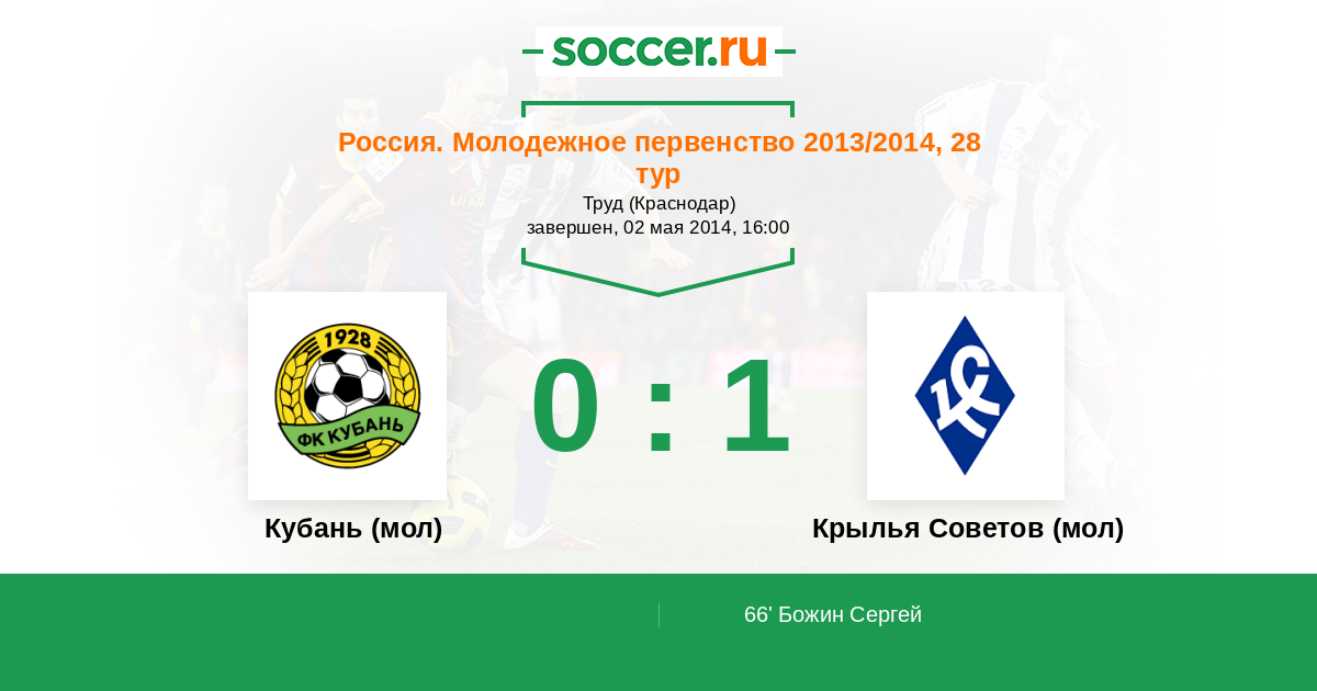 Кубань (мол) - Крылья Советов (мол): обзор матча 2 мая 2014