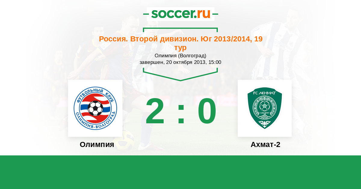 Олимпия - Ахмат-2: обзор матча 20 октября 2013