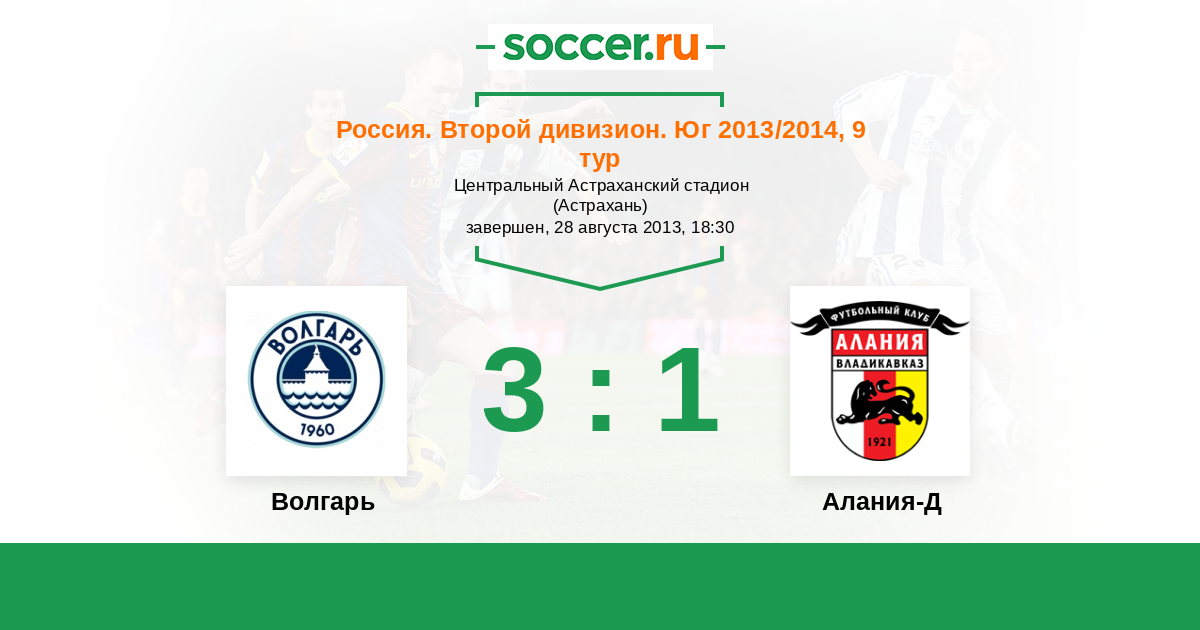 Волгарь - Алания-Д: обзор матча 28 августа 2013