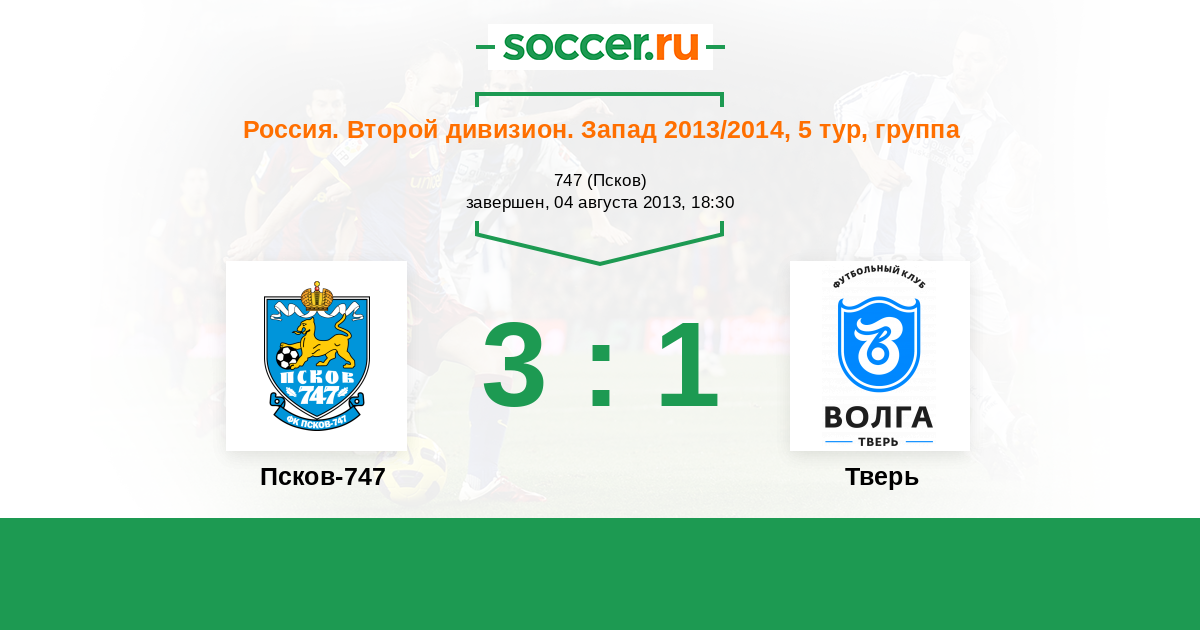Псков-747 - Тверь: обзор матча 4 августа 2013