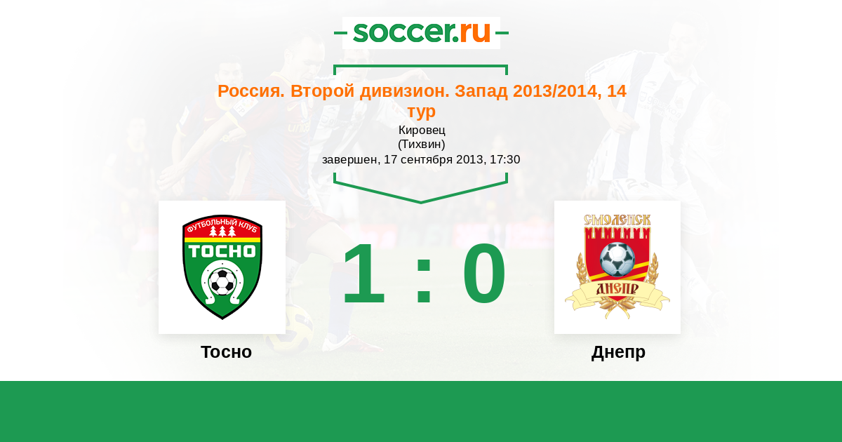 Тосно - Днепр: обзор матча 17 сентября 2013