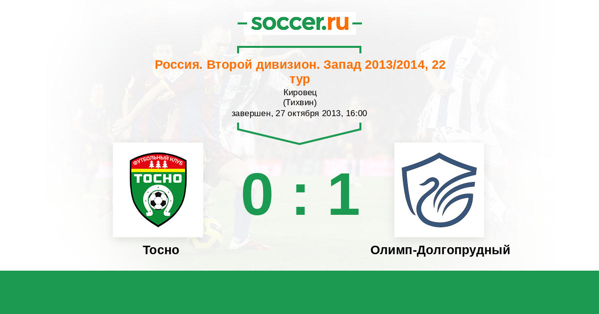 Тосно - Долгопрудный: обзор матча 27 октября 2013