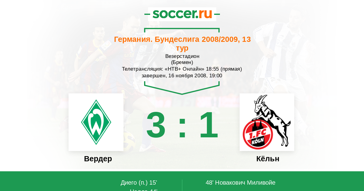Вердер - Кёльн: обзор матча 16 ноября 2008