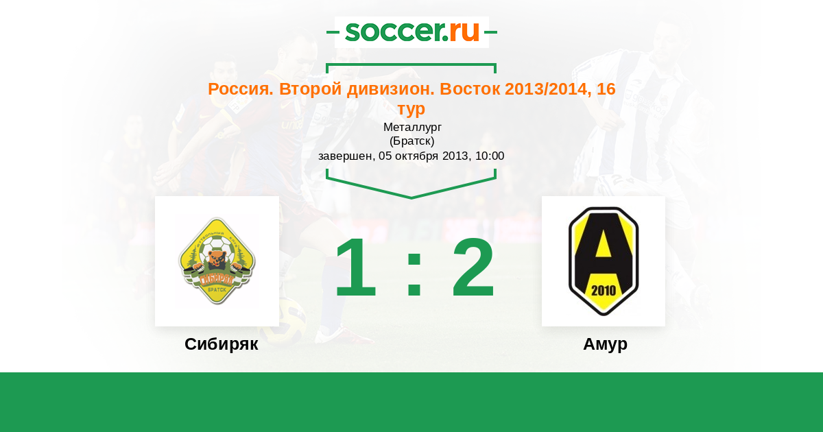 Сибиряк - Амур : обзор матча 5 октября 2013