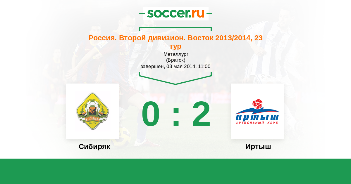 Сибиряк - Иртыш: обзор матча 3 мая 2014