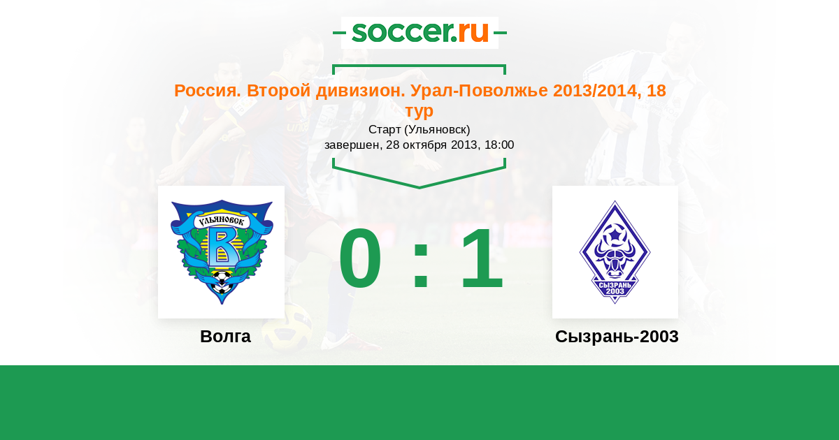 Волга - Сызрань-2003: обзор матча 28 октября 2013