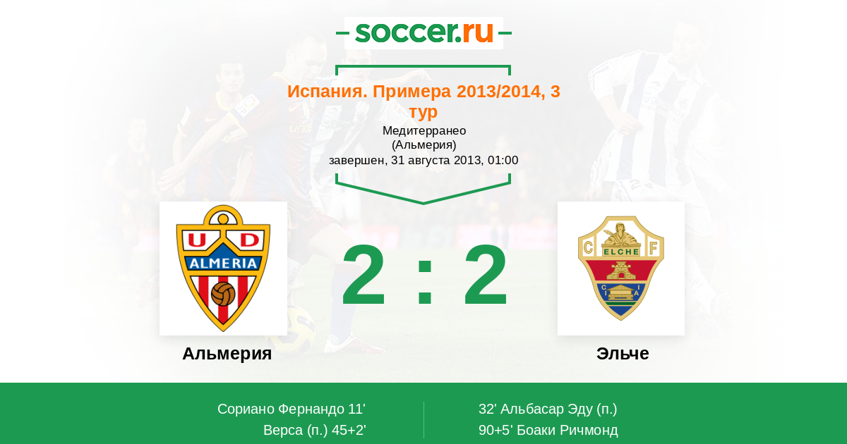 Альмерия - Эльче: обзор матча 31 августа 2013