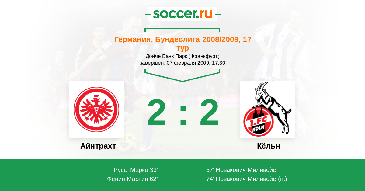 Айнтрахт - Кёльн: обзор матча 7 февраля 2009