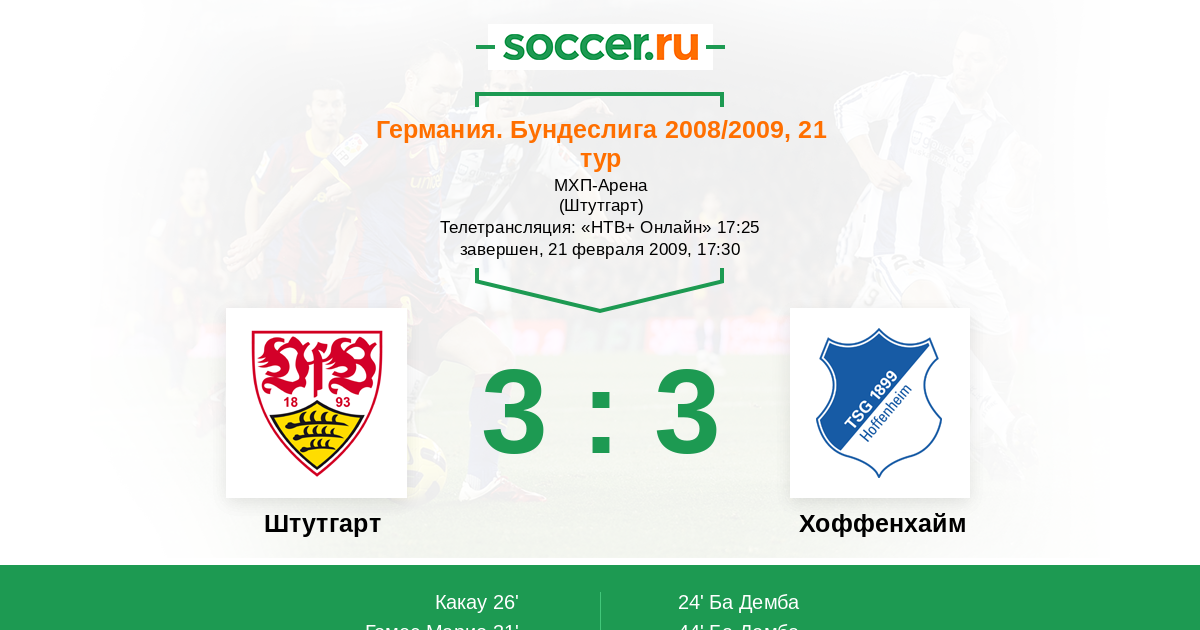 Штутгарт - Хоффенхайм: обзор матча 21 февраля 2009