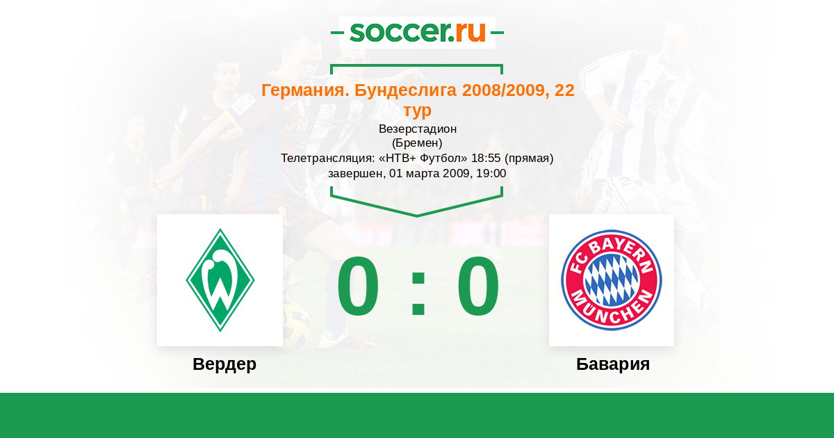 Бремен, Везерстадион Телетрансляция: "НТВ+ Футбол" 18:55 (прямая)