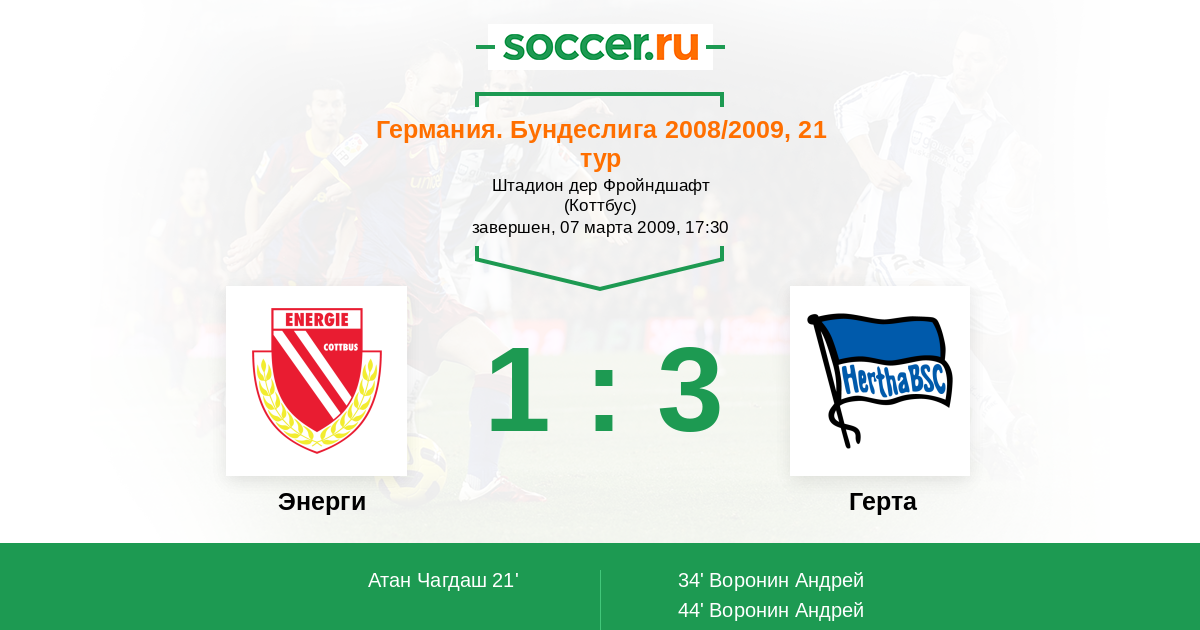 Энерги - Герта: обзор матча 7 марта 2009