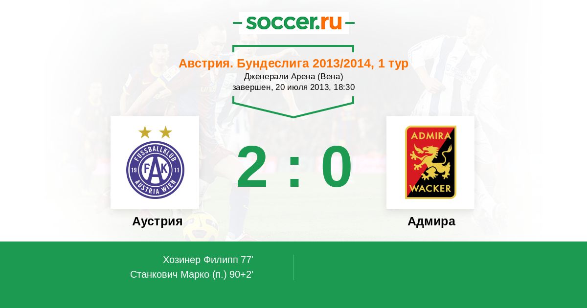 Аустрия - Адмира: обзор матча 20 июля 2013