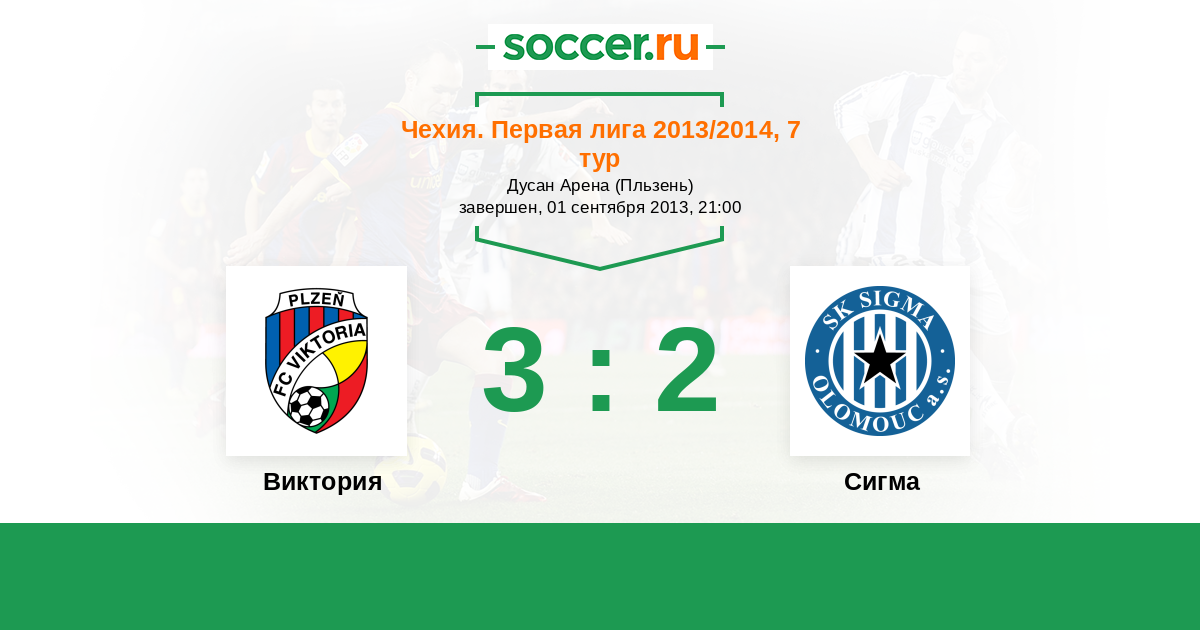 Виктория - Сигма: обзор матча 1 сентября 2013