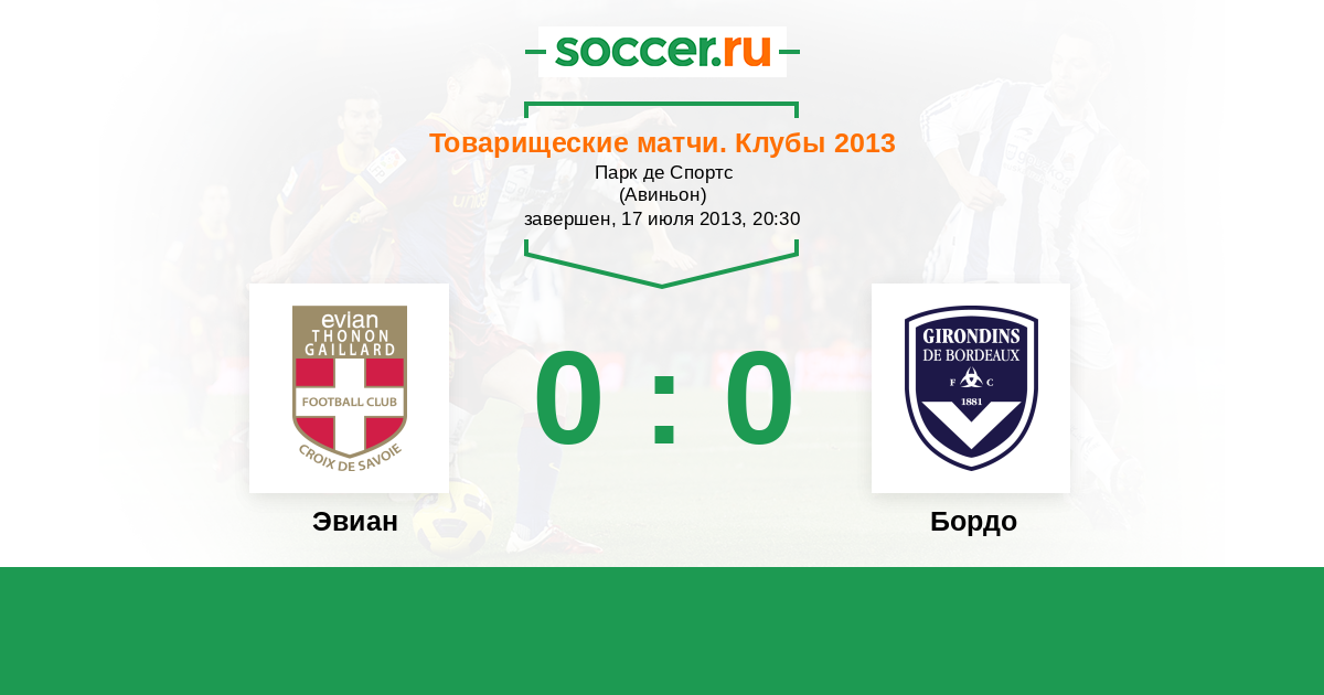 Эвиан - Бордо: обзор матча 17 июля 2013