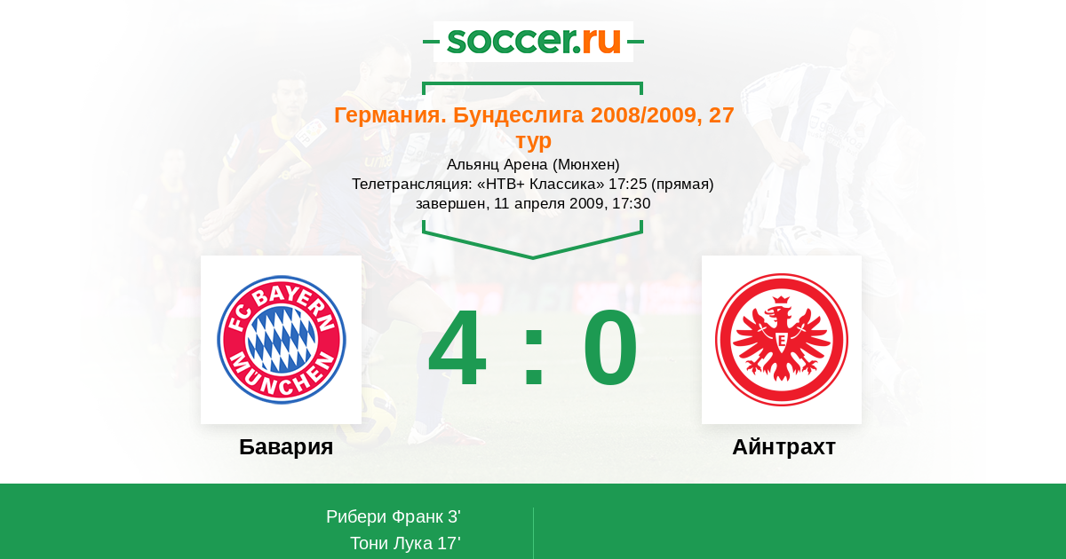 Бавария - Айнтрахт: обзор матча 11 апреля 2009