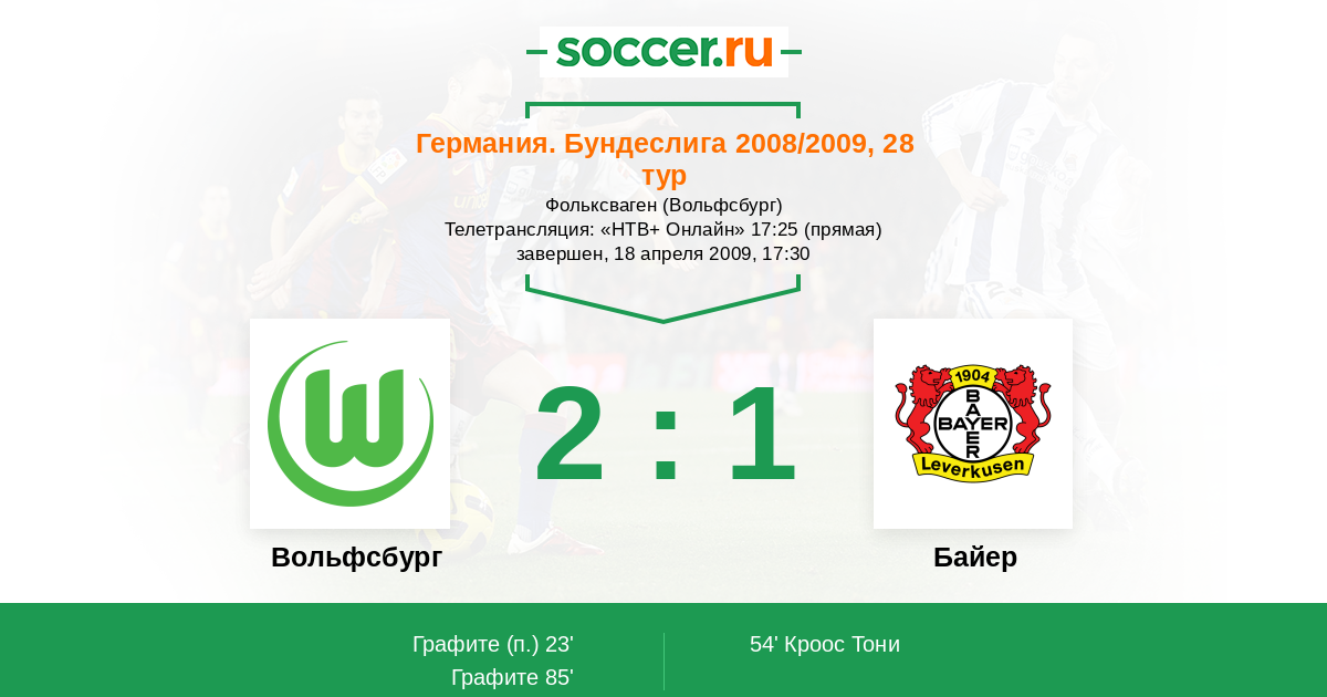 Вольфсбург - Байер: обзор матча 18 апреля 2009