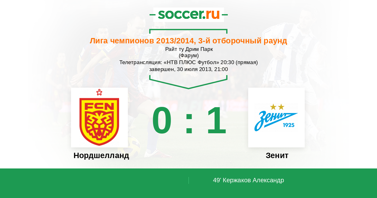 Нордшелланд - Зенит: обзор матча 30 июля 2013