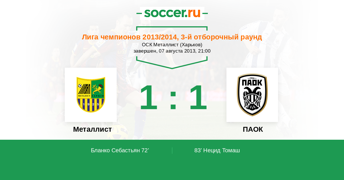 Металлист - ПАОК: обзор матча 7 августа 2013