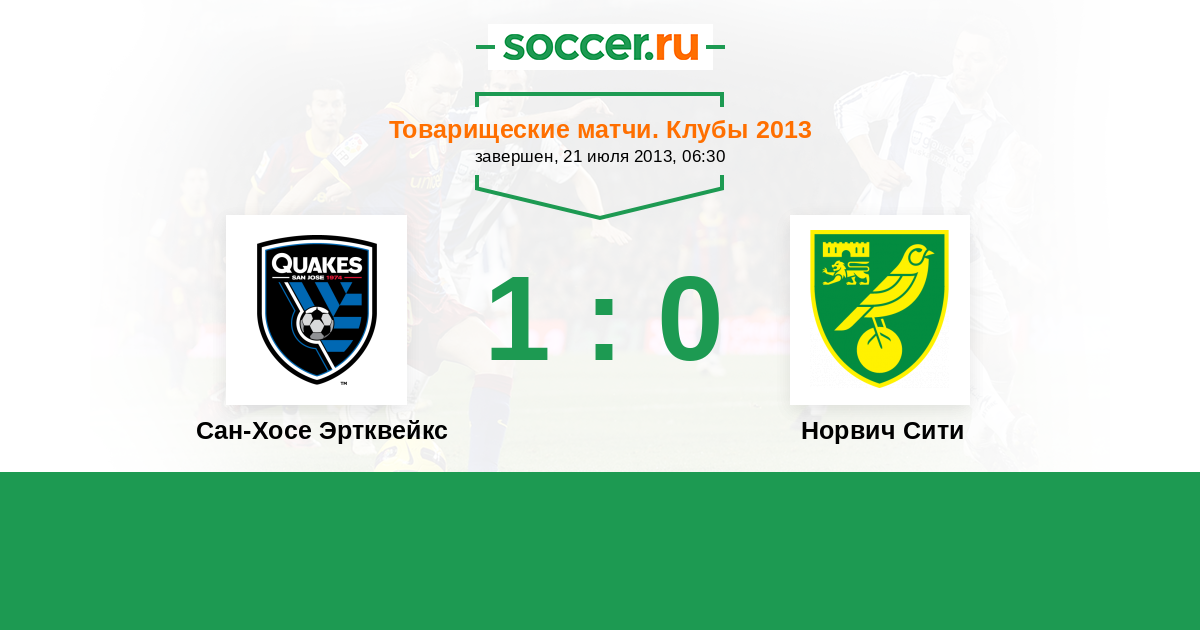 Сан-Хосе Эртквейкс - Норвич Сити: обзор матча 21 июля 2013