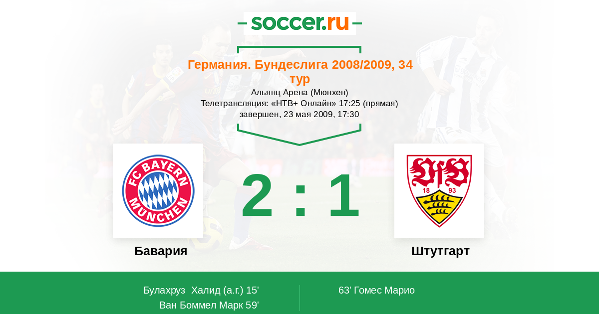 Бавария - Штутгарт: обзор матча 23 мая 2009