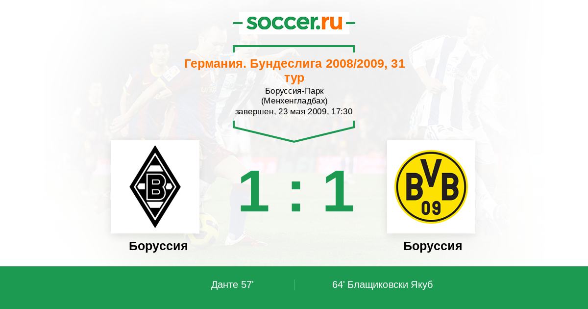 Боруссия М - Боруссия Д: обзор матча 23 мая 2009