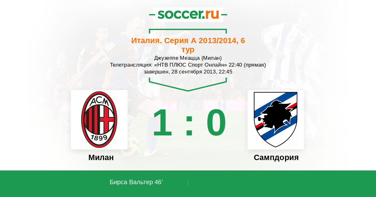 Милан - Сампдория: обзор матча 28 сентября 2013