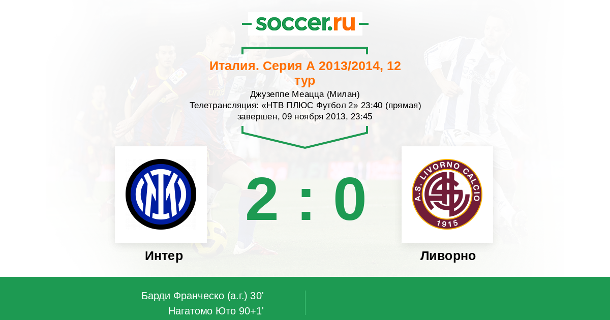 Интер - Ливорно: обзор матча 9 ноября 2013
