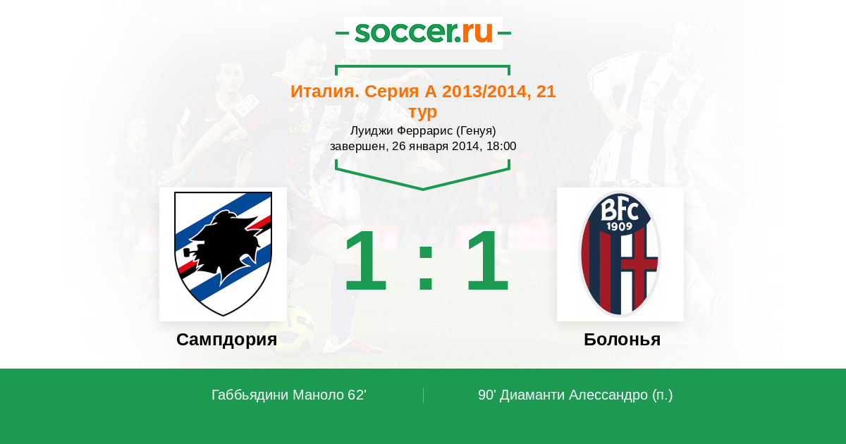 Сампдория - Болонья: обзор матча 26 января 2014