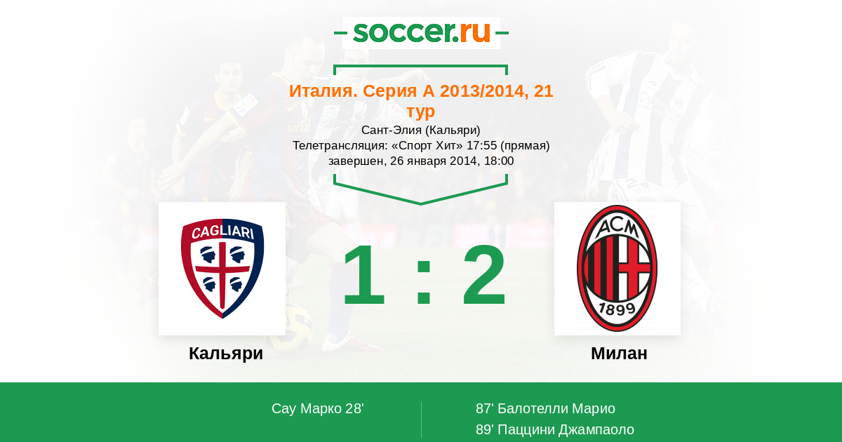 Кальяри - Милан: обзор матча 26 января 2014