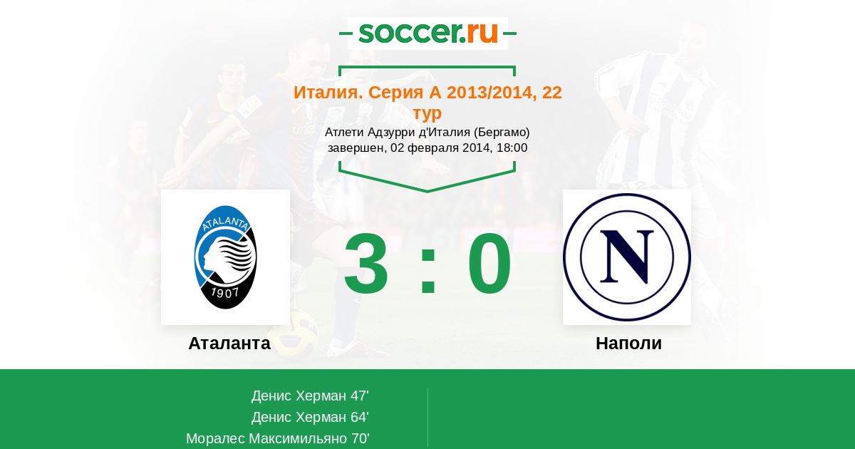 Аталанта - Наполи: обзор матча 2 февраля 2014