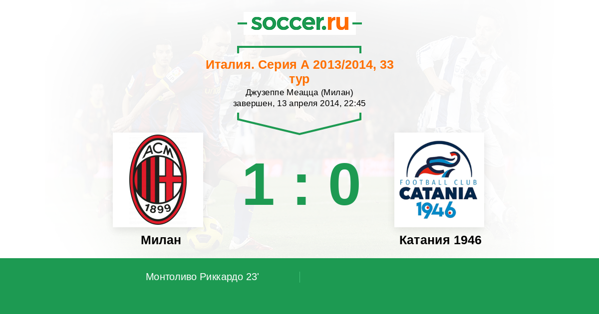Милан - Катания 1946: обзор матча 13 апреля 2014