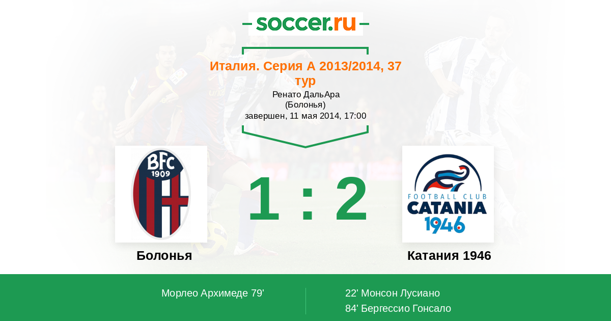 Болонья - Катания 1946: обзор матча 11 мая 2014