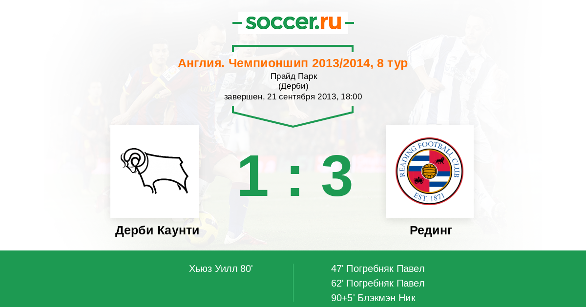 Дерби Каунти - Рединг: обзор матча 21 сентября 2013