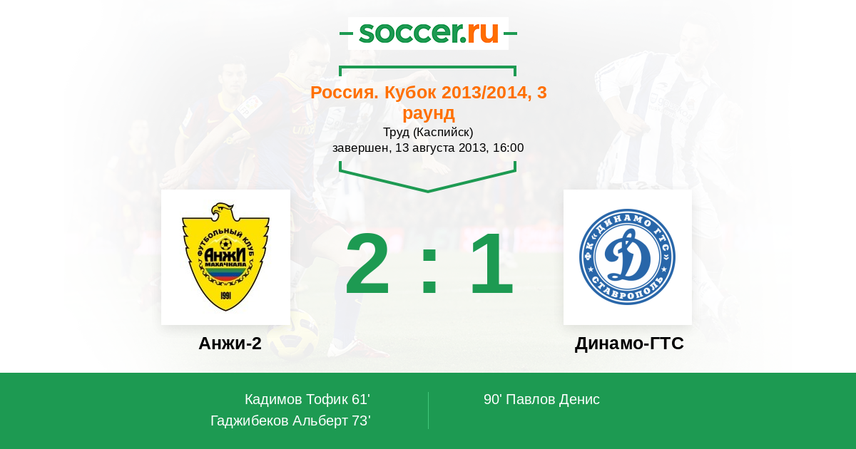 Дагдизель - Газпром-Трансгаз-Ставрополь: обзор матча 13 августа 2013