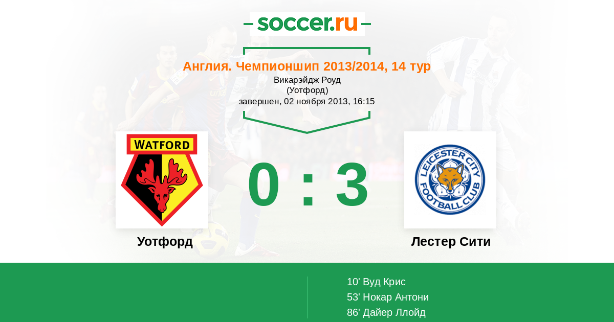 Уотфорд - Лестер Сити: обзор матча 2 ноября 2013