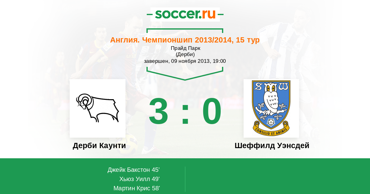 Дерби Каунти - Шеффилд Уэнсдей: обзор матча 9 ноября 2013