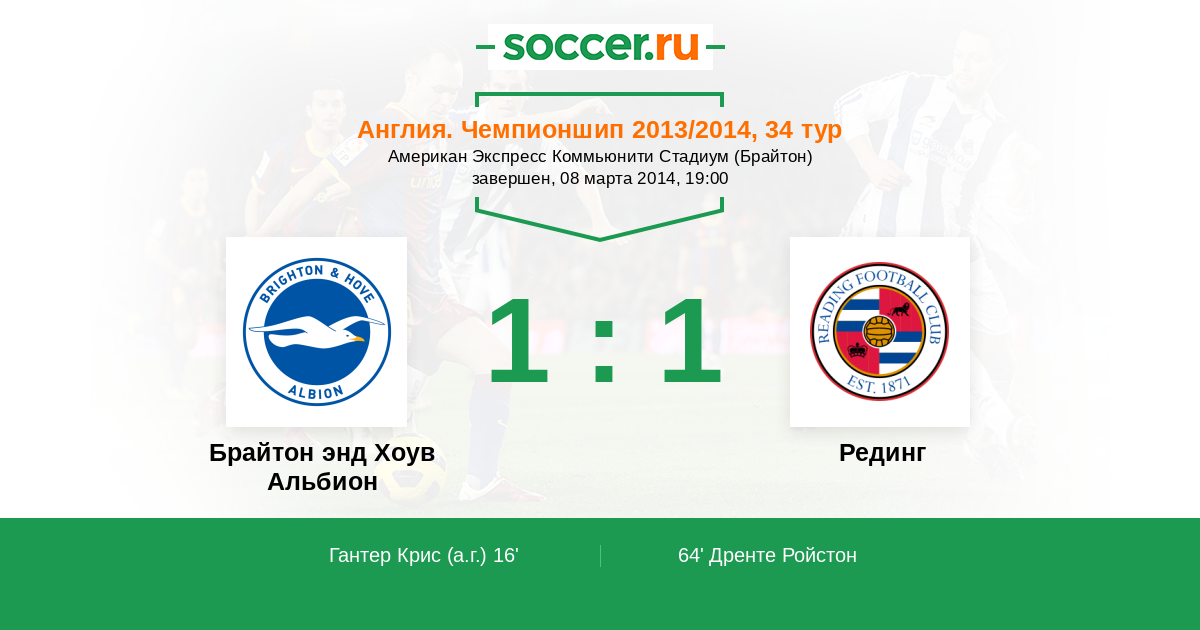 Брайтон энд Хоув Альбион - Рединг: обзор матча 8 марта 2014