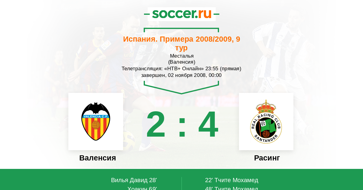 Валенсия - Расинг: обзор матча 2 ноября 2008